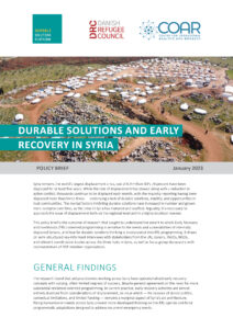 Nonetheless, opportunity exists inasmuch as early recovery objectives and displacement concerns are inherently interlinked. Indeed, prioritising durable solutions for Syria’s significant camp populations and other IDPs is an important step that may maximise value for money and facilitate more substantial progress toward early recovery objectives, including the transition beyond repeated cycles of emergency humanitarian support and reducing host-IDP tensions amid rising baseline needs. Syria remains locked in a frozen conflict, with little to no hope for a political breakthrough of the kind that may be needed for return across conflict lines in the foreseeable future. It is therefore important that aid practitioners emphasise the strategic utility of smaller steps toward durable solutions, rather than focusing exclusively on long-term outcomes that may remain out of reach for the foreseeable future.